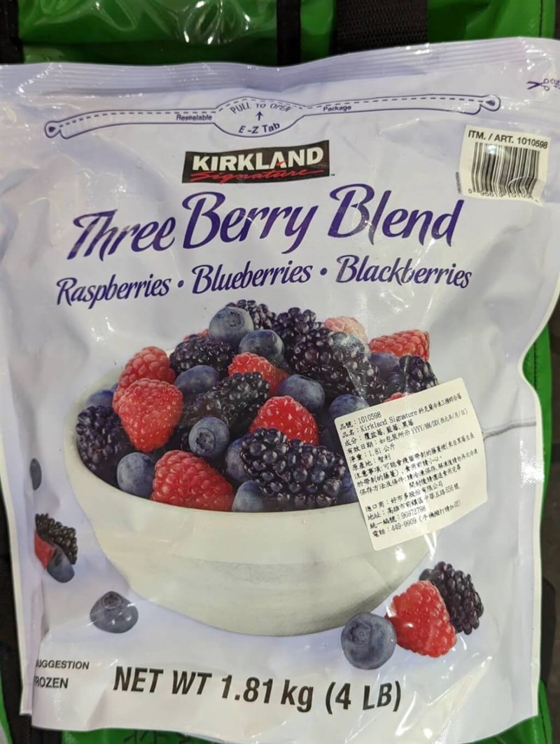 另外,衛福部食品藥物管理署今日上午公布,自4月28日至5月14日,科克蘭冷凍莓果類產品回收總量已達4萬6339.02公斤,以冷凍綜合莓最多,共2萬3398.84公斤,其次是冷凍藍莓2萬1706.84公斤,冷凍草莓1233.34公斤。