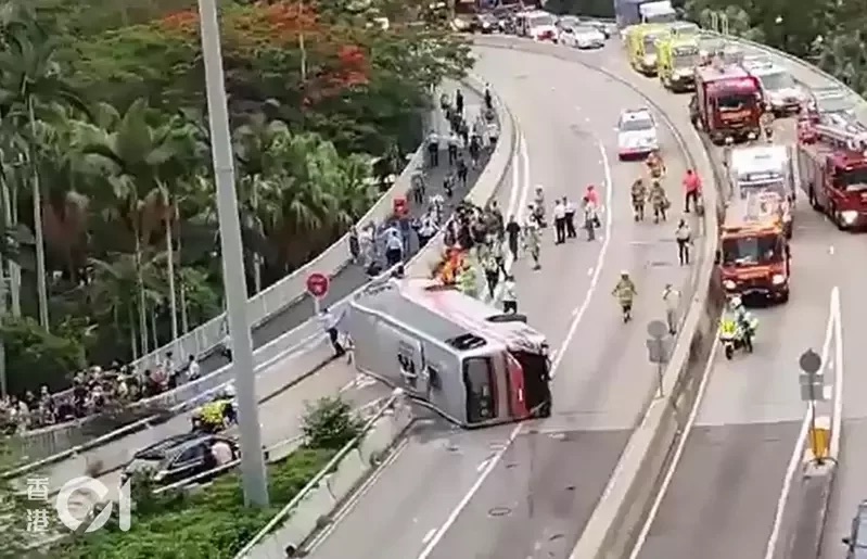 香港01報導,該輛巴士的駕駛是64歲李姓男子,巴士在地下留下10多公尺的剎車痕,乘客在翻車後各自爬出車廂,在路邊或躺或坐等待救援,也有人因疼痛而受困在車廂內,無法動彈,等待救難人員。