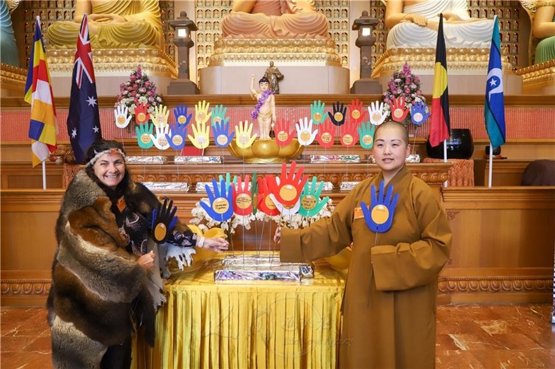 Venerable Zhi Li(right) took a photo with Jodi Edward, Custodian of Dharawal Aboriginal Land. photo/The Life News Agency