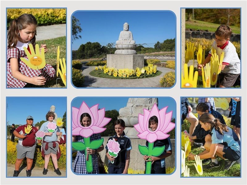 One of the highlights of this event was the "Sea of Hand sand Lotus" installation art. Drawing inspiration from the Australian Aboriginal "Sea of Hands" concept, Fo Guang Shan Nan Tien Temple incorporated the lotus element, combining unity, justice, and reconciliation in Aboriginal culture and self-benefit and benefiting others, eliminating opposition, and harmonious coexistence of Buddhist principles. Lotus stickers were placed on hand-shaped signs surrounding the Buddha statue, resembling the radiance of the Buddha's halo and representing the illuminating power of coexistence and cultural integration.