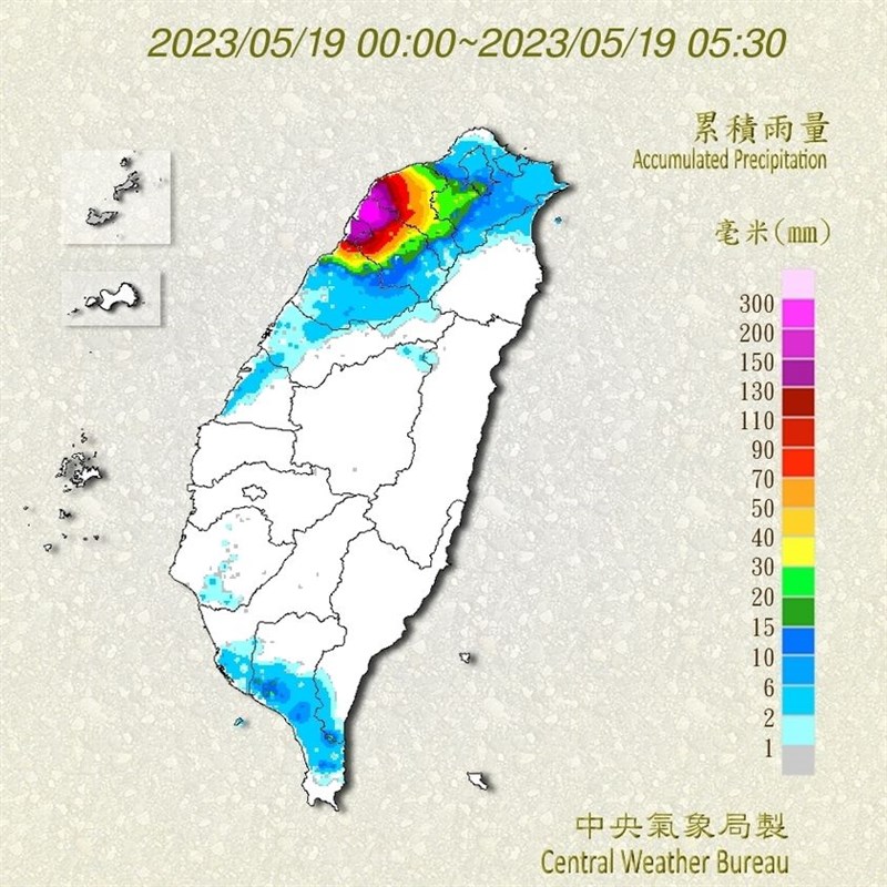 根據氣象局資料顯示,日累積雨量前10名都在新竹縣市,以新竹縣新豐鄉西濱N066K測站329.5毫米最多,其次是新竹縣新豐鄉外湖測站284.0毫米、新竹縣新豐鄉新豐測站281.5毫米。