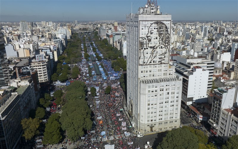 數以千計阿根廷民眾走上布宜諾斯艾利斯街頭,抗議嚴峻的經濟情勢和國際貨幣基金的作為,許多人指責這個國際組織的緊縮措施導致阿根廷20年來最嚴重的經濟危機更加惡化。