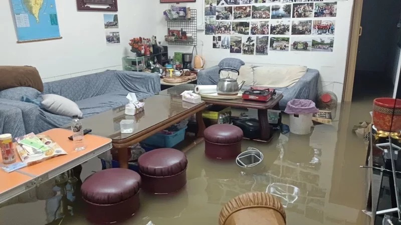 新竹縣因鋒面來襲19日晨出現短延時強降雨,將提供災害救助補助,供淹水受災戶淹水50公分以上,每戶最高補助2萬元。圖/讀者提供