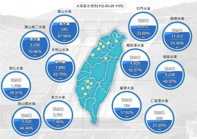 南水局表示,以當前台南減量供水現況,這波鋒面帶來進水,曾文水庫400萬噸加上南化水庫200萬噸,預估進水總量約600萬公噸,若依台南每天用水量約100萬公噸,總共可供應台南6天用水。