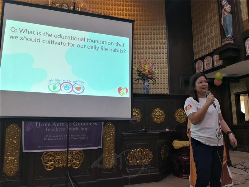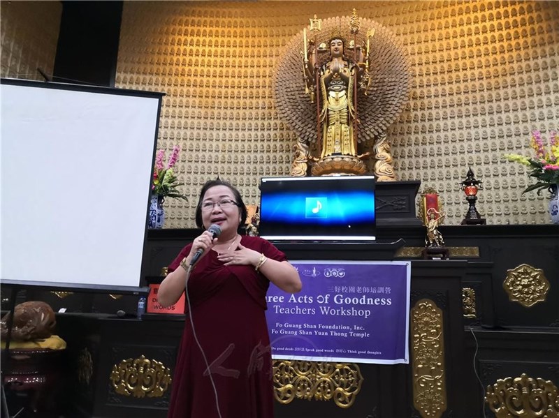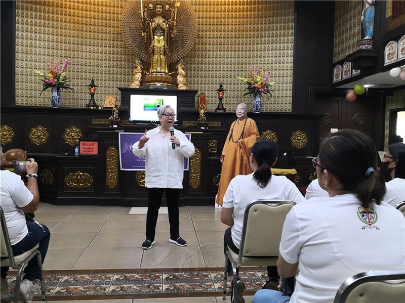 Dr. Josette Balandra introduced us to one of the programs the Fo Guang Shan order provides: a 10.000P grant to implement the three acts of goodness in schools. photo/Yuan Thong Temple