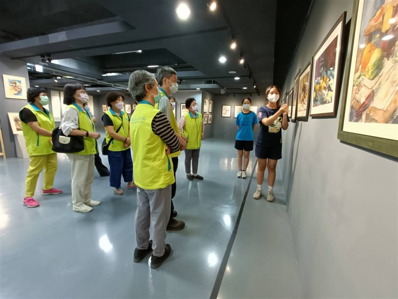 學生為觀者進行導覽,分享藝術內涵。圖/文化局