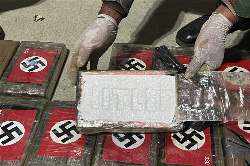 根據警方公布的圖片,一共查獲50塊磚頭大小的古柯鹼、總重達58公斤,而每個包裹上都有納粹標誌,其中部分打開的古柯鹼磚更可以見到上頭印有字母「HITLER」,被認為是指納粹領導人希特勒(Adolf Hitler)。