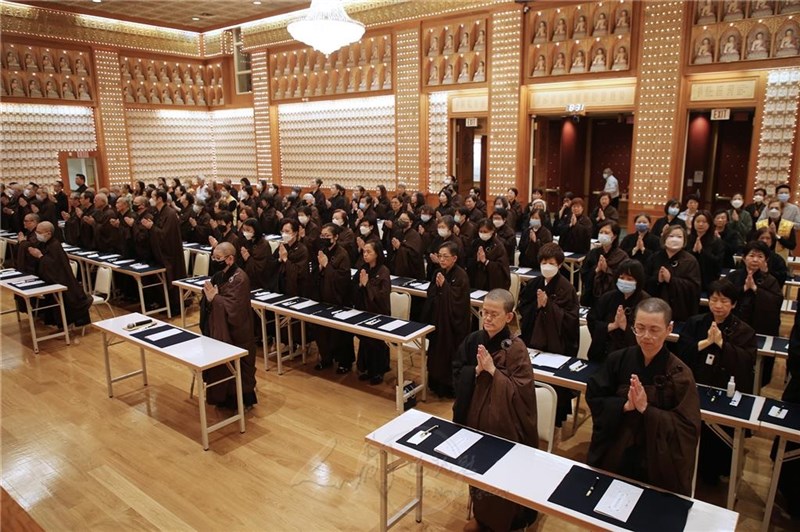 On May 16th, also known as Buddha's Light Day, Fo Guang Shan (FGS) Temple of Toronto launched a series of commemorative events and activities for remembering the late founder of FGS, Venerable Master Hsing Yun. Specifically, The Compassionate Life of Venerable Master Hsing Yun ~ A Humanistic Buddhism Practitioner Memorial Exhibition was officially opened to the public. In the evening, a global Sutra transcription cultivation was held in the Main Shrine to mark the 57th anniversary of the establishment of FGS Monastery. Both the Venerables and the lay congregation solemnly gathered to recite and transcribe the Heart Sutra as a tribute to Venerable Master Hsing Yun’s legacy.