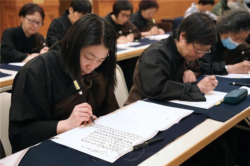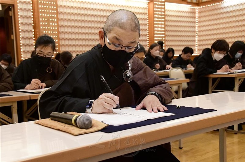 Venerable Chueh Fan led the congregation to practice Sutra transcrition. photo/The Life News Agency