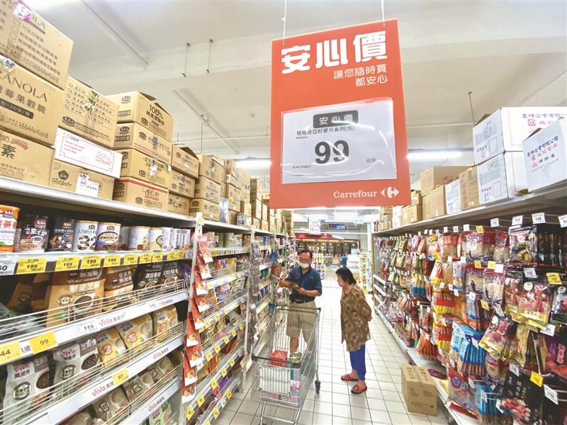 行政院主計總處昨下修今年經濟成長率至2.04%、推估2023全年消費者物價指數(CPI)上漲率為2.26%,通膨仍在持續中。圖為民眾在大賣場購物。圖/中央社