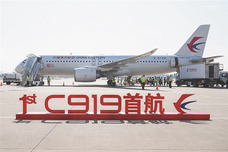 【本報綜合報導】陸產大型客機C919於28日首次商業飛行,130名受邀或被抽中的乘客,搶先體驗上海到北京航班,中國大陸工信部部長金壯龍也是座上賓。東方航空表示,C919將投入上海虹橋到成都天府的航線上,實施常態化商業運行,美媒評論稱,波音和空巴幾十年來的「雙頭壟斷地位」,在大陸市場受到挑戰。