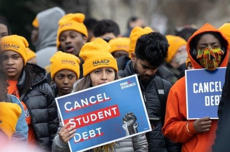 2月28日,美國學生在位於首都華盛頓的最高法院門前呼籲取消學生債務。 圖/法新社