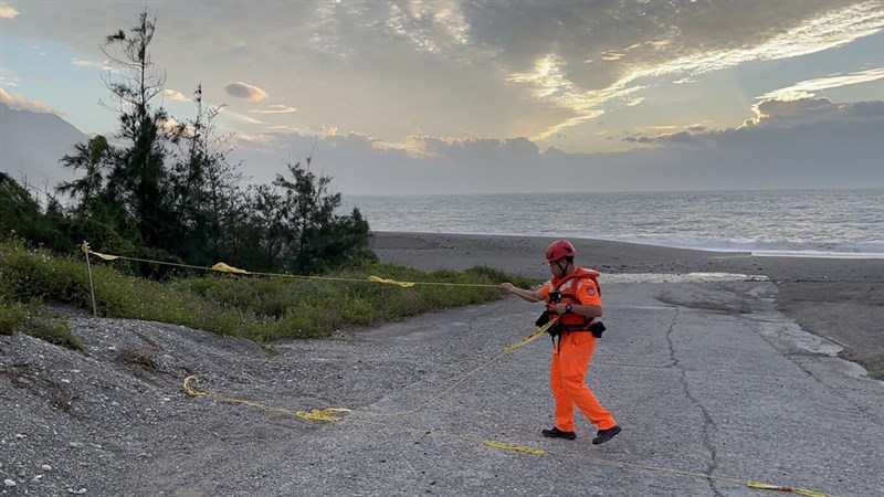 颱風「瑪娃」海上颱風警報29日晚上發布,花蓮30日出現間歇陣雨,海巡人員在沿岸禁(限)制公告區域拉設封鎖線,防止民眾進入。圖/海巡署東部分署第一二岸巡隊提供