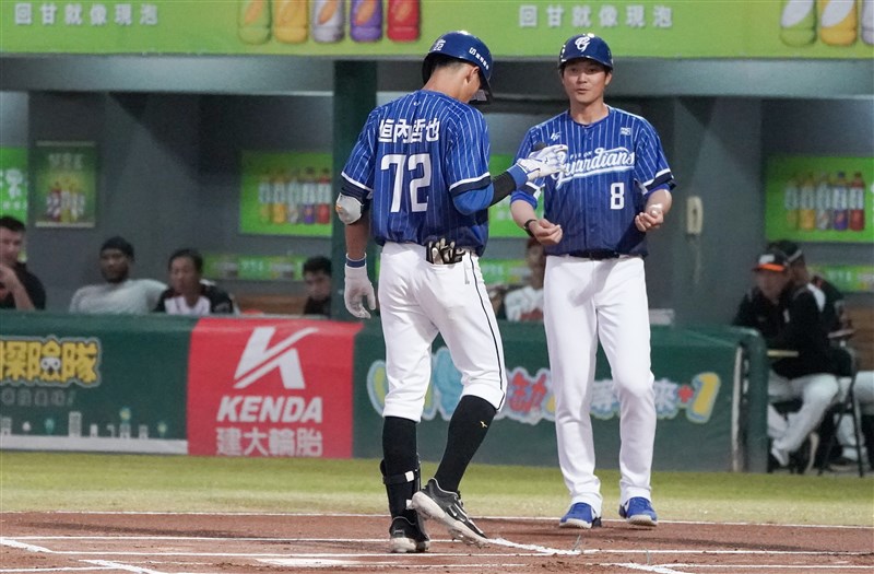 李宗賢未帶球衣穿打擊教練垣內哲也的球衣,但敲出本季首轟,相隔971天開轟。圖/富邦悍將提供