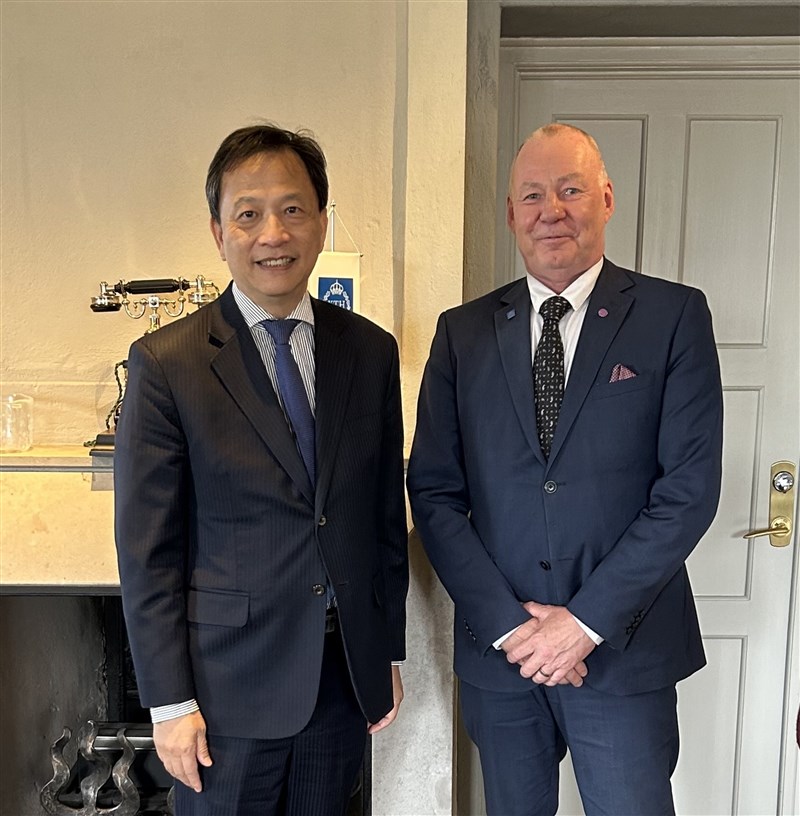 【本報綜合外電報導】駐瑞典代表谷瑞生5月31日拜會瑞典皇家理工學院校長瑟德霍,雙方就如何深化該校與台灣多間大學合作交流關係交換意見,谷瑞生代表教育部邀瑟德霍擇期赴台參訪。
