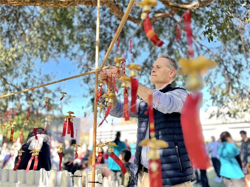 Willoughby City Councillor Tim James prayed for community harmony. photo/Fo Guang Shan Nan Tien Temple Chatswood