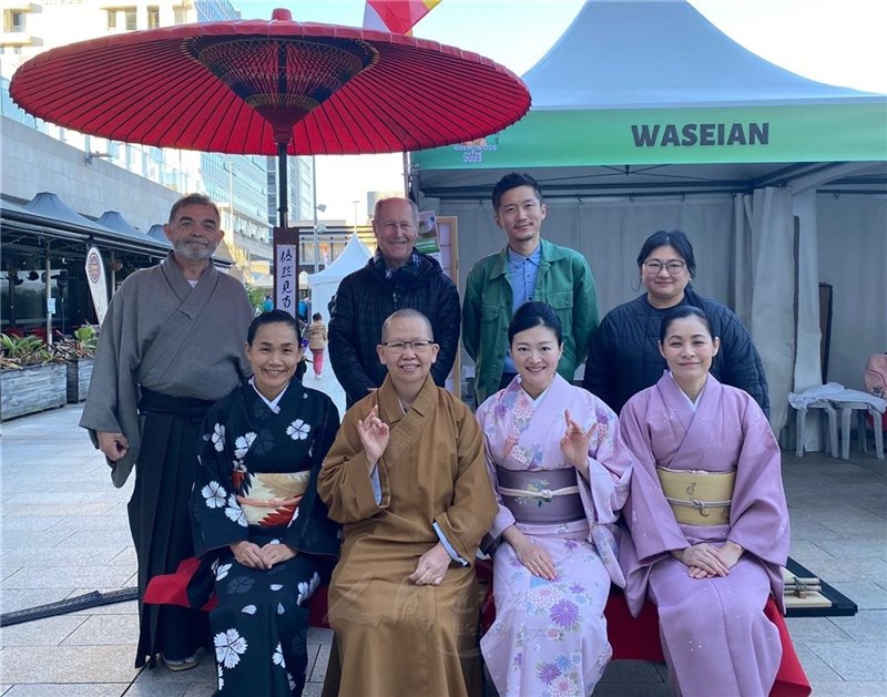 The organizers asked guests from various countries to wear traditional Japanese kimono, Malaysian attire, Vietnamese clothing, Nepalese attire, Australian outfits, Indonesian costumes, Chinese traditional Hanfu, and BLIA uniforms, symbolizing the harmony and integration of diverse cultures.