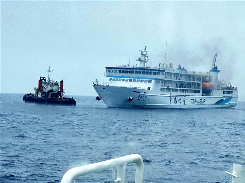 往返台灣與馬祖的交通船「台馬之星」3日清晨故障,在馬祖外海27浬漂流,389名旅客受困。交通部航港局緊急調派拖船前往拖帶救援,下午拖回南竿,人船均安。圖/海巡署金馬澎分署提供