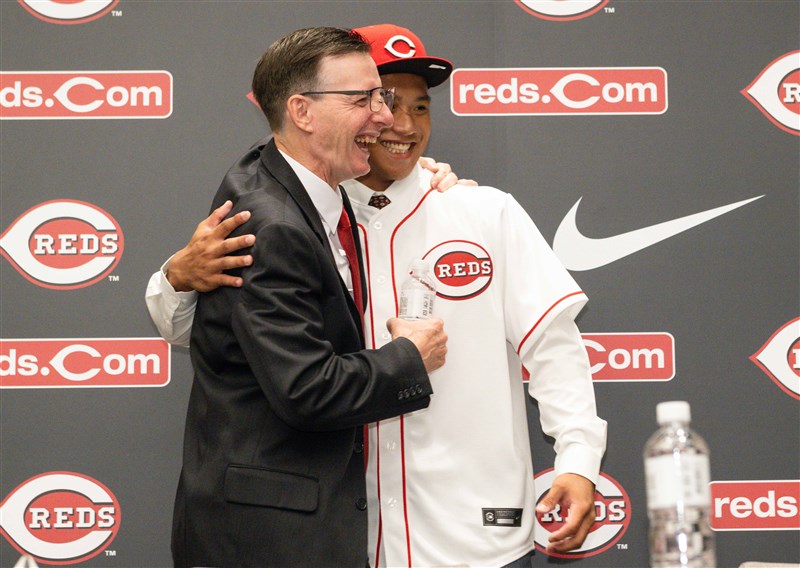 【記者曾博群台北報導】青棒好手林盛恩今天與美職辛辛那提紅人隊正式簽約,展開旅美之路,簽約金120萬美元,外加10萬美元學費,他喊出希望在5年內上大聯盟,挖掘他的球探史托維克(Jamey Storvick)聽到後直言:「非常有可能」,並看好他成為每天出賽的球員,且能夠擔任打線開路先鋒。