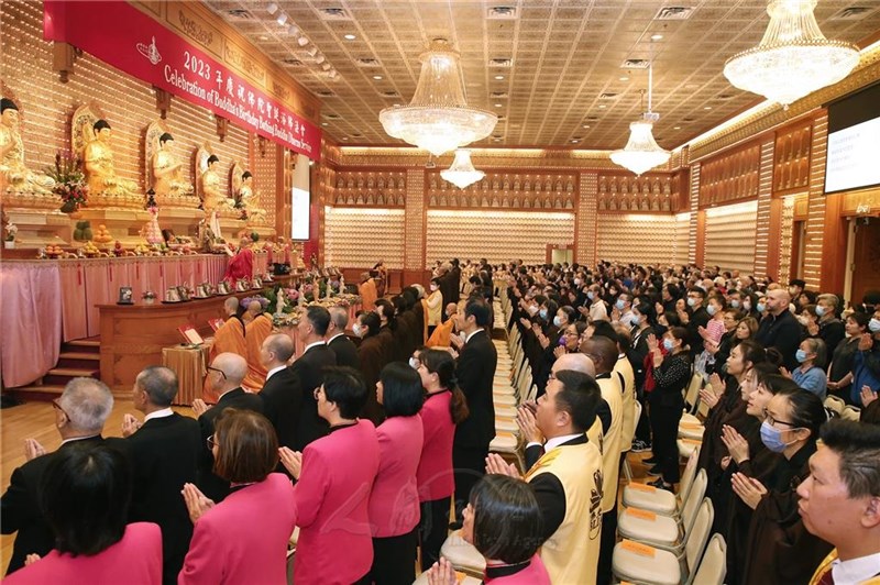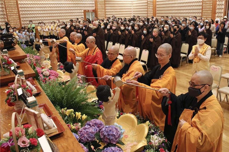 On the morning of May 21st, Fo Guang Shan Temple of Toronto held the “2023 Celebration of the Buddha's Birthday & Singing Praises for Venerable Master Hsing Yun.” Over a thousand Fo Guang members and devotees participated in the joyous occasion to bathe the baby Buddha in celebration of the Buddha's birthday.