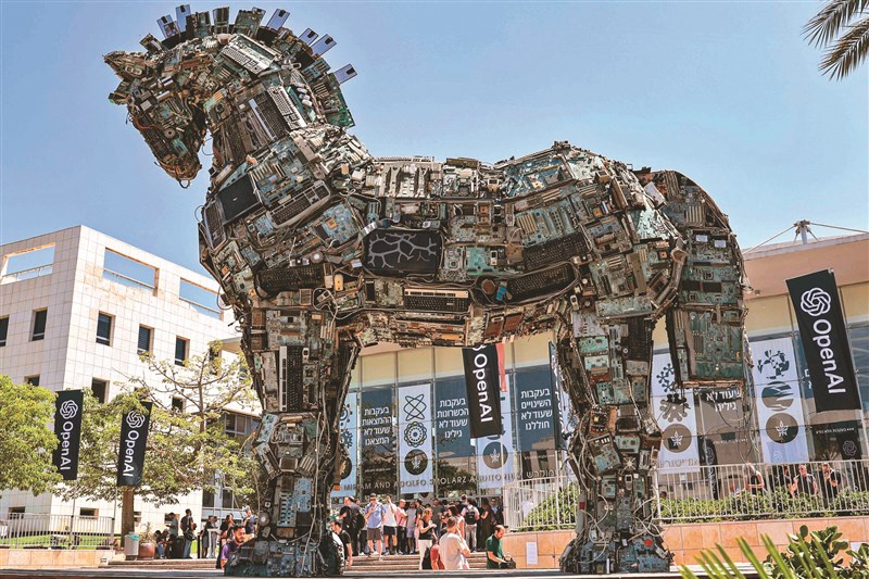特洛伊電子馬 |2023.06.07 語音朗讀 500觀看次 字級 大 中 小 以色列特拉維夫大學校園,設置了一座源自傳說的「特洛伊木馬」,完全由微電子電路板和其他電腦零件打造而成;美國人工智慧開發商OpenAI的旗幟在一旁飄揚。圖/法新社 以色列特拉維夫大學校園,設置了一座源自傳說的「特洛伊木馬」,完全由微電子電路板和其他電腦零件打造而成;美國人工智慧開發商OpenAI的旗幟在一旁飄揚。圖/法新社 前一篇文章 佛羅倫斯6月起禁歷史中心增短租房源 羅馬考慮跟進 下一篇文章 蘋果首款MR頭盔亮相 明年上市 熱門新聞 01【讓愛自由】纏繞與獨立之間2026.04.0202新生首次到校2026.04.0203明德水庫蓄水量僅27% 今起供4停42026.04.0104星雲大師靈骨分燈日本 法燈長明2026.04.0105星雲大師靈骨分燈泰國 化益世人2026.04.02069公尺高恐龍 現身澄清湖2026.04.0107東京櫻花滿開2026.04.0108中美並重 鄭麗文傳6月訪美2026.04.0109打字機重返課堂 對抗AI代寫2026.04.0210睽違53年 NASA載人繞月1日升空2026.04.01 訂閱電子報 台北市 天氣預報 台灣一週天氣預報 相關報導 清明假期 陸跨區流動破8億人次陸突設東海飛航管制40天 引猜測阿提米絲2號 將創人類離地球最遠紀錄俄3月未進占烏領土 2年半首見國際能源總署籲勿囤油 劍指中美阿德萊德風箏節
