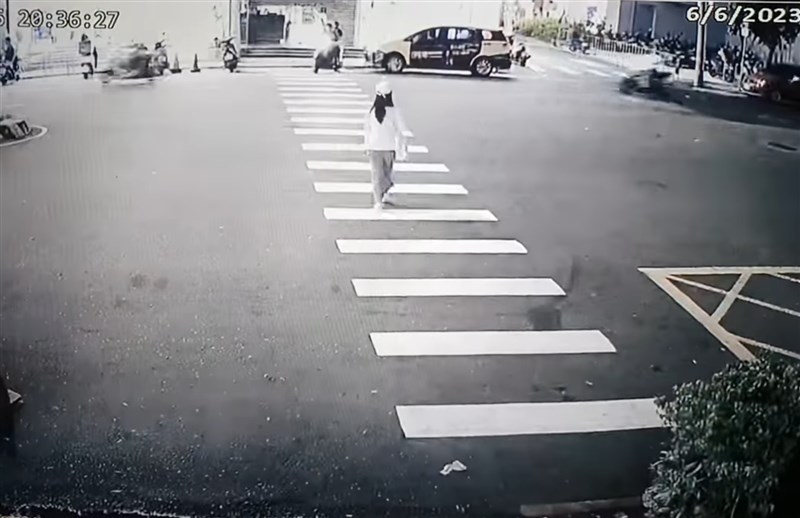 走無號誌斑馬線沒車要禮讓 通過時被第25輛車撞上 |2023.06.07 語音朗讀 1263觀看次 字級 大 中 小 一名女子昨(6日)晚走在台中市沙鹿區沒燈號的行人穿越道,沒車輛禮讓,在她將抵達對面時,被一輛機車撞擊。圖/擷取自臉書沙鹿之美 【本報台中訊】一名女子昨(6日)晚間在台中市沙鹿區要過馬路,走到行人穿越道即斑馬線上,謹慎查看左右二側來車,快速過馬路,但沿途沒有汽摩托車禮讓,險象環生,就在她即將抵達對面時,被一輛急駛而來的摩托車撞上,在空中翻了一圈,重傷送醫急救。臉書沙鹿之美有熱心民眾po監視器畫面,提醒大家注意交通安全問題,畫面中,一名女子遵守交通規則,走在斑馬線旁,此路口無交通號誌,她要走到對面,謹慎往左右二側查看來車,再快速通過。女子在過斑馬線時不斷左右看,注意車輛,卻沒半輛車停止禮讓她通行。圖/擷取自臉書沙鹿之美她走在斑馬線時,沒有任何車輛禮讓,汽摩托車在她身旁急駛而過,還有摩托車從她正前方騎來,女子將走到對向時,一輛摩托車急駛而來,將女子撞飛,她在空中翻了一圈才落地,重傷送醫急救。網友看監視器畫面都說很扯,行人遵守交通規則,卻沒有汽摩托車駕駛禮讓,車速很快,難怪被稱為行人地獄;一名網友說,這種驚險畫面,不知何時才來消失。女子小心翼翼通過車來車往的斑馬線。圖/擷取自臉書沙鹿之美清水警分局調查,昨晚8點42分。 沙鹿區沙田路124號前。吳姓男子騎摩托車沿沙田路往中正街方向直行,與行人吳姓女子徒步行走在斑馬線上橫越沙田路,雙方發生交通事故,造成重摩托車左側車身受損,雙方均有全身擦挫傷,但意識清楚,雙方均送光田醫院救治中。吳姓男子無酒駕。警方已製作相關資料將陳報台中市交通警察大隊分析研判,釐清肇責。在女子快抵達對面時被一部沒禮讓的摩托車撞上。圖/擷取自臉書沙鹿之美 前一篇文章 本周天氣不穩有午後雷陣雨 下周梅雨旺盛恐致災 下一篇文章 4萬2865人符合資格 大學申請入學14日放榜 熱門新聞 01動物的精采瞬間(上)2026.02.0802【遨遊藝事】巴黎 黛瑪兄弟茶館(Dammann Frères)2026.02.0603兩岸新聞營師生 認識人間佛教2026.02.0504佛教藝文本土化 昆士蘭美術館團隊訪中天寺2026.02.0505印尼佛教學院開學 培育國際弘法僧才2026.02.0506社區學童岡山講堂行春 學三好迎接午馬年2026.02.0507向前有路 光明在望2026.02.050810年前震倒115死 台南維冠改建防震7級大樓2026.02.0609美擊落伊朗無人機 緊張局勢升高2026.02.0510長頸族2026.02.05 訂閱電子報 台北市 天氣預報 台灣一週天氣預報 相關報導 涉貪汙 高金素梅住辦遭搜索新春換新鈔 全台455據點可兌換海鯤號潛航畫面曝光 試射自衛誘標美擬再對台軍售 金額6千億後備軍人教召 改為14天政院:晶片先進製程 我仍領先