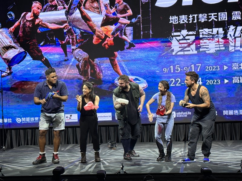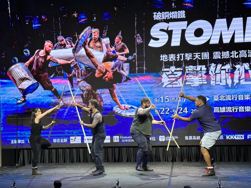 記者會現場STOMP更是帶來了一段長達五分鐘的片段,圖為團員們拿起木棍相互敲擊,演出充滿戲劇張力。圖/記者曹麗蕙