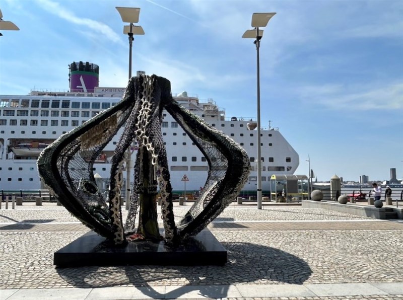 回應這屆主題,藝術家安聖惠的作品〈Ngialibalibade-致 失落的神話〉靈感源自其自身背景魯凱族的傳說。傳說中魯凱族的祖先是從被百步蛇所保護的陶壼中誕生,陶壺因此成為生命起源的象徵。安聖惠藉這古老意象,在展覽現場搭建巨型金屬容器,並運用回收魚網進行手工編織,將陶壼轉化成神聖的「器皿」,期待觀眾可以走入矗立於Mersey河及王子碼頭水岸間的神聖場域,在這件紀念物中思考參觀者與水的依存關係,反思氣候變遷對於人類現在所處環境的毀滅性影響。