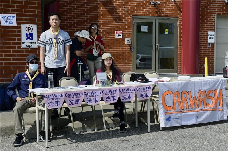 Due to the COVID-19 pandemic, the Scouts car-washing fundraiser was re-initiated after the four year hiatus. The Scouts community was proactive in engaging with their tasks. (photographer: Shaohong He)