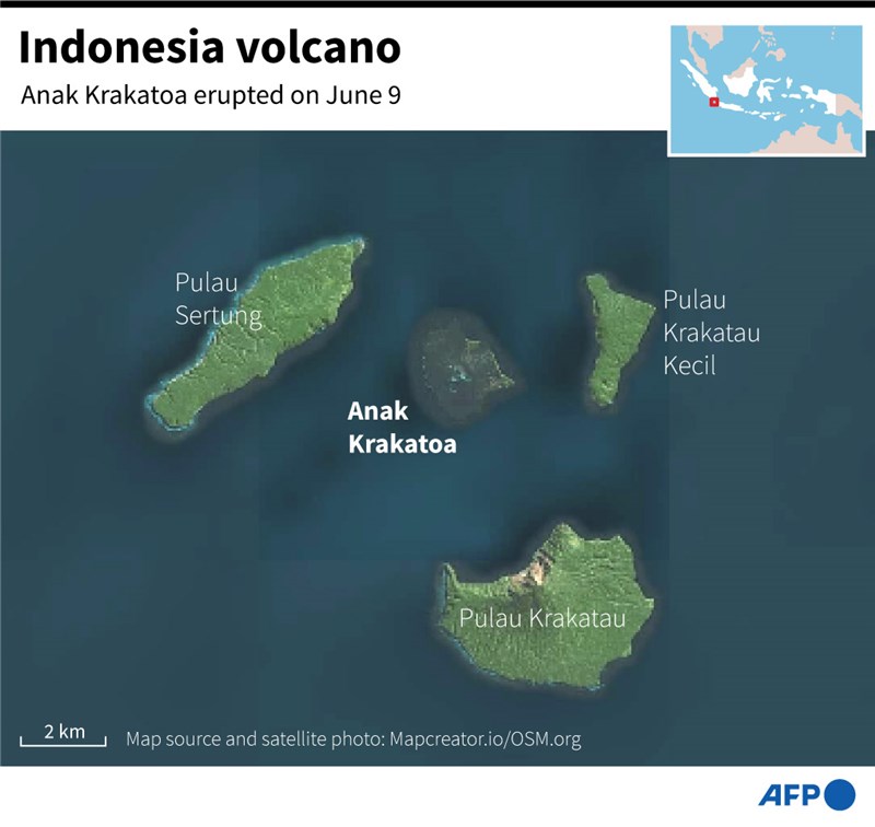 喀拉喀托之子島位在爪哇和蘇門答臘之間,島上火山曾在2018年大爆發,引發海嘯造成數百人傷亡。喀拉喀托之子火山長期處於半連續噴發狀態,約每2、3年爆發一次。
