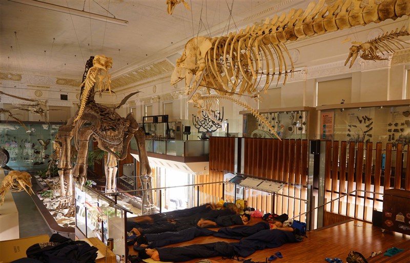 台博館推出文化禮金專場夜宿活動,暑假開跑的7月份,可以到古生物館參加「骨感夜間修護-博物館夜宿體驗」,除了有結合博物館主題的桌遊試玩,還能和恐龍骨骼標本共眠,共度奇幻的夜間旅程。圖/台博館提供