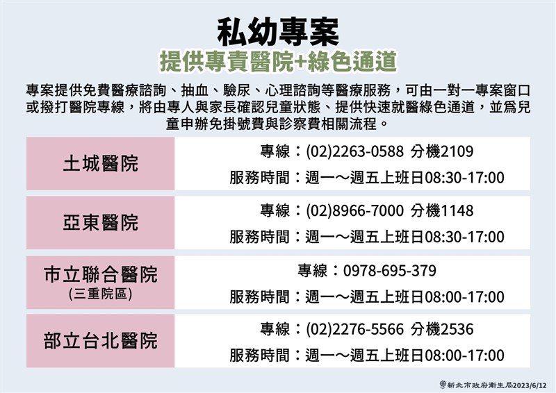 汐止私幼孩童驗出苯二氮平類 醫院17日入園採檢 |2023.06.16 語音朗讀 698觀看次 字級 大 中 小 汐止某私幼孩童驗出苯二氮平類案,已派員前往稽查並留存相關資料,預計17日由專責的市立土城醫院入園採檢。圖/Unsplash 【本報新北訊】新北市政府今(16)日表示,汐止某私幼孩童驗出苯二氮平類案,已派員前往稽查並留存相關資料,今天也調查詢問家長為孩童檢驗的意願,預計17日由專責的市立土城醫院入園採檢。新北汐止一名家長帶就讀幼兒園的孩子,到衛福部台北醫院驗出苯二氮平類,2次尿液檢測都小於每毫升200納克(ng/ml)基準,衛福部附屬醫療及社會福利機構管理會執行長林慶豐15日說,判定陰性。市府上午舉行疑似餵藥案進度記者會,市長侯友宜說明,汐止幼童尿檢案於15日接獲訊息,立即與當事幼童家長聯繫,同時指派專案專業輔導員,主動提供家長相關諮詢與聯繫。侯友宜說,教育局接獲案件後,派員至幼兒園稽查、留存監視器資料,並啟動行政調查,15日與今天也向家長調查到園為幼童採檢的意願,17日將由衛生局協調專責的土城醫院指派醫師到園採檢,並提供後續醫療諮詢服務。圖/Unsplash侯友宜說,汐止幼童尿檢案,衛福部已公布檢驗為陰性,希望外界以科學理性態度面對,尊重醫療專業與判讀,不要以訛傳訛造成恐慌,也讓司法可釐清真相,另外也已經請教育局全面檢查新北幼兒園,更完備餵藥的程序。侯友宜說,板橋私幼疑餵藥案發生後,6月3日指派市立土城醫院專責醫療、檢驗、就醫的諮詢協助,9日增加亞東醫院、市立聯合醫院,提供公費檢驗,市府衛生局今天增加雙和醫院、淡水馬偕、汐止國泰、台北慈濟醫院,加上衛福部台北醫院,新北共有8家醫院提供檢驗,家長若對孩子健康有疑慮,可到醫院檢查以放心。苯二氮平類(BZD)是助眠管制藥物,醫師說,這是臨床常用處方藥,具鎮定、抗焦慮作用,同時也是第3到4級毒品,過量恐致命。新北市私幼專案提供免費專案提供免費醫療諮詢、抽血、驗尿、心理諮詢等醫療服務。圖/取自新北市政府衛生局官網 前一篇文章 星雲大師:工作祕笈 下一篇文章 MLB/大谷再創百年紀錄 遊騎兵教頭:他宰制我們 熱門新聞 01【閃文集】火星暗斑之謎2025.12.1602【詩】草螟公2025.12.1803與精品品牌撞鞋 印度涼鞋打專利戰2025.12.2104如何優雅不濺水花?2025.12.1605高雄新航線明啟動 佛光山成亮點2025.12.1706寶塔寺 三代同堂搓湯圓、繪燈籠2025.12.1607福建艦航經台海 空拍照首曝光2025.12.1808受星雲大師啟發 旅日名廚獲頒黃綬褒章2025.12.1609資助流浪漢之家 里斯本佛光人跨文化送暖2025.12.1810社論--改變與改變的能力2025.12.16 訂閱電子報 台北市 天氣預報 台灣一週天氣預報 相關報導 鄭麗文訪佛光山 找到歡喜信心全台首座螺旋圓環憲訴法修正案 憲法法庭判違憲吳豊山辭海基會董座 賴聘任資政涉貪無罪 高虹安今復職上班高虹安二審逆轉 貪汙無罪