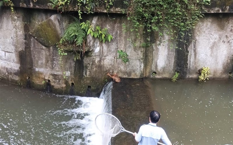 動保處表示,山羌上岸後外觀並無明顯外傷,精神及活動力良好,為避免野生動物於捕捉後因緊迫而猝死,當天就近於旁邊的山林尋找適合地點野放,結束一天的「山羌驚魂記」。
