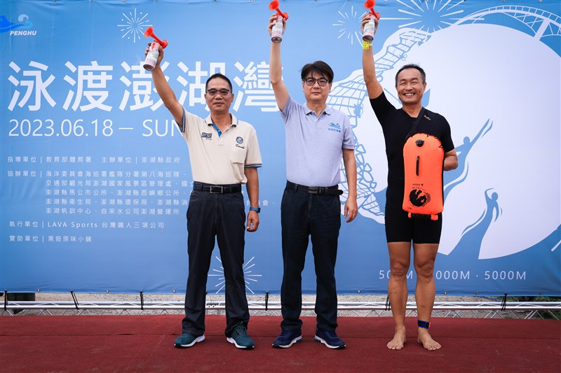 2023泳渡澎湖灣 1400名選手下水參賽 |2023.06.18 語音朗讀 1297觀看次 字級 大 中 小 2023泳渡澎湖灣今天(18日)在大菓葉與觀音亭海域盛大登場。圖/中央社 【本報澎湖訊】2023泳渡澎湖灣今天(18日)在大菓葉與觀音亭海域盛大登場,吸引近1400名選手參加。5000公尺跨海泳渡組,由來自高雄的三鐵國手季胤呈以1小時40分55秒奪冠。2023泳渡澎湖灣今天上午由澎湖縣長陳光復、澎管處長許宗民、馬公市長黃健忠、教育處長蘇啟昌、教育部體育署中央輔導委員鄭志富、賀中慧等人共同鳴笛後展開,共計近1400名男女選手參賽,場面熱鬧。圖/澎湖縣府提供泳渡澎湖灣中的5000公尺泳渡組,清晨6時30分從大菓葉下水游馬公觀音亭海域,其餘2000公尺挑戰組、500公尺體驗組,則在上午9時依序下水,包括董事長樂團的吉董和白董以及藝人姚黛瑋等人也在教練率領下挑戰2000公尺,主辦單位也在現場安排美食攤位,讓泳者上岸後可以品嘗在地澎湖小吃。今天水域潮流清澈穩定,5000公尺泳渡組前3名都是來自本島且是首次參賽,分別由高雄的三鐵國手季胤呈以1小時40分55秒奪冠,第2、3名由活動代言人的三鐵國手郭家齊和來自台北的劉又瑋,2人都是首次參賽就奪得前3名,領先澎湖與外籍選手,並盛讚澎湖海域非常適合泳渡挑戰。圖/中央社陳光復表示,澎湖縣政府自2002年開始舉辦泳渡澎湖灣活動,迄今已邁入第21年,與花火節都是澎湖最具代表性觀光品牌活動,今年泳渡澎湖灣將近1400名游泳好手報名參賽,歡迎來自全國各地愛好游泳選手體驗美麗澎湖灣,也提醒參加選手們注意安全。 前一篇文章 暑假出遊想賞海景夕陽 6大目的地推薦 下一篇文章 石門水庫蓄水升破9成 近滿庫水位面臨放水 熱門新聞 01MLB太空人打敗洛磯 鄧愷威中繼成功2026.04.1602法全票通過 掠奪文物歸還中國2026.04.1703勞動部將研議 勞退舊制移入新制2026.04.1804佛光山線上佛學院開學 逾百學員雲端共學2026.04.1505【詩】靜寂 2026.04.170645%失智症可預防 類黃酮食物護大腦2026.04.1607多倫多佛光山寺院體驗營 青年探索內心2026.04.1608【詩】春天的孤挺花2026.04.1609星雲大師紀念特展 紐西蘭一館開幕 2026.04.1610新馬寺領袖培訓營 小學生奮起飛揚2026.04.15 訂閱電子報 台北市 天氣預報 台灣一週天氣預報 相關報導 體驗超輕航機 5月報名都市林10年計畫 打造樹蔭通勤廊道還地於河 磺港溪重生花蓮推友善賞鯨 找回觀光人氣淡江大橋路跑 7000人參與勞動部將研議 勞退舊制移入新制