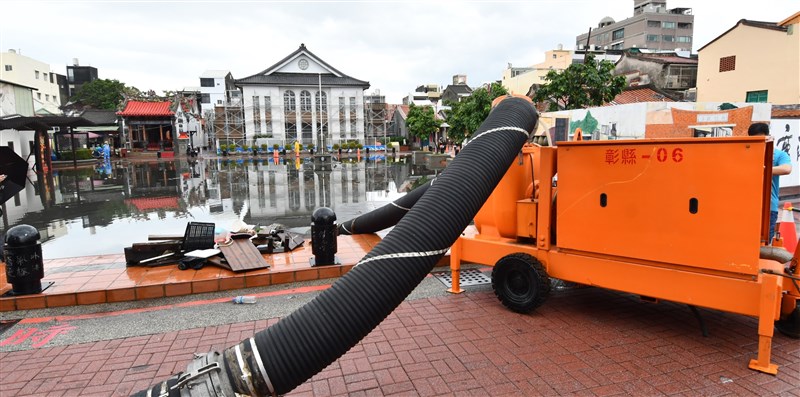彰化縣鹿港鎮20日清晨下雷雨,雨勢又急又猛造成鹿港老街、鹿港天后宮、鹿港公會堂一帶淹水嚴重,由於雨勢減緩,加上抽水機運作,淹水陸續消退。圖/彰化縣政府提供