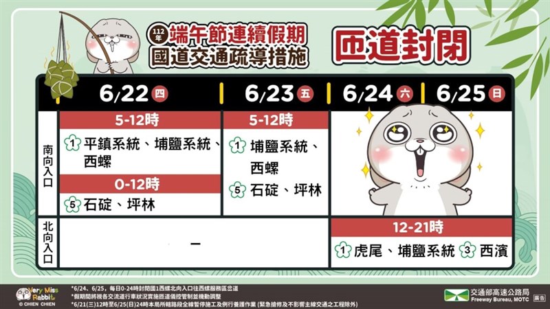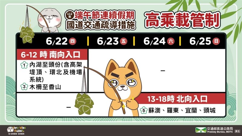 端午連假前夕 國5南下宜花深夜前易塞車 |2023.06.21 語音朗讀 956觀看次 字級 大 中 小 高速公路局預估6月21日國道5號南下往宜蘭、花蓮方向,上午到深夜易塞車。圖/資料照片 【本報台北訊】明天(22日)起4天端午節連續假期,高速公路局預估今天國道5號南下往宜蘭、花蓮方向,上午到深夜易塞車。高公局研判今天國道車流有通勤、返鄉及出遊,全天車流量111百萬車公里,約平日1.2倍,國5南下車流量大約是平日1.5倍,南港到頭城可能從上午9時至深夜12時都易塞車。另傍晚6時至晚8時,高公局預測國道1號楊梅到新竹、國3號土城到關西也可能壅塞。高公局今天實施國道疏導措施,只有增開國道3號南深路出口及南港聯絡道前路肩。圖/取自高速公路局臉書圖/取自高速公路局臉書圖/取自高速公路局臉書圖/取自高速公路局臉書 前一篇文章 各地高溫炎熱 山區午後留意零星雷陣雨 下一篇文章 黏土材質超級環保杯 用完立即回歸自然 熱門新聞 01全中運張雅佳游泳 3 金 雙破全國2026.04.2402【詩】 鐮刀俠2026.04.2103佛光山開山60周年 傳授三壇大戒2026.04.2004人情冷暖與計算 悅讀〈 杜十娘怒沉百寶箱 〉2026.04.21052026地球日 行動永續綠色未來 2026.04.2206永和學舍慶佛誕 千人浴佛清淨身心2026.04.2207【走讀城鄉】淡水市街清代三合院─施家古厝2026.04.2408嘉義.朴子 樸城煙霞古韻長 水道遺風話滄桑2026.04.2009火金姑復育有成 螢光爆發2026.04.2110衣服晾乾變硬 微觀祕密 2026.04.22 訂閱電子報 台北市 天氣預報 台灣一週天氣預報 相關報導 日本溫泉文化 融入九份夜景桃園龍岡米干節 潑水祈福大都會公園 繁花繽紛交織CPR指引擬修正 成人兒童按壓至少5公分金門找金喜 初夏打卡趣鏟子超人公仔 見證最暖身影