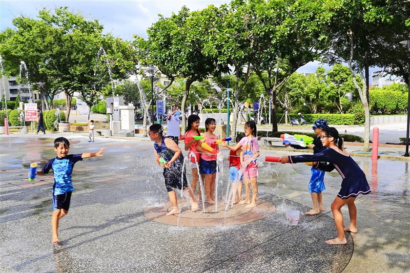 苗栗市民廣場戲水區噴水設備,公所去年考量疫情及中央疫情指揮中心宣布放寬戴口罩等防疫措施,8月5日開放,今年配合學童暑假,恢復7月1日起開放,市公所強調開放前多次清洗蓄水池,並測試相關設備運轉無虞,戲水期間每天換水。