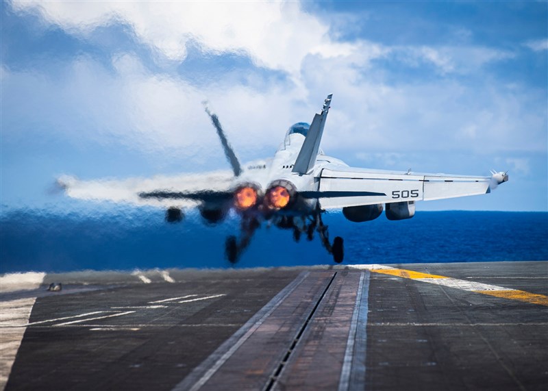 美軍F 18超級大黃蜂從航母起飛瞬間。圖/FB 7thfleet