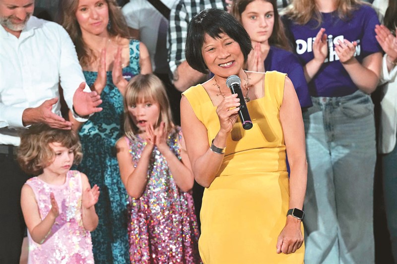 香港移民、加拿大前國會議員鄒至蕙,二十六日當選多倫多市長後,與支持者一起慶祝。圖/美聯社