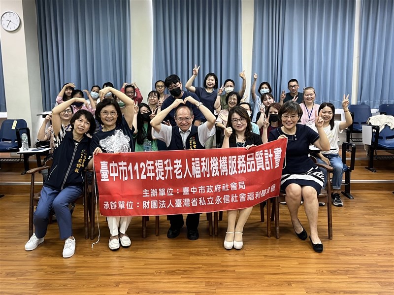 台中市政府社會局官員及永信社會福利基金會執行長趙明明,一同為學員加油打氣!圖/永信社福基金會提供