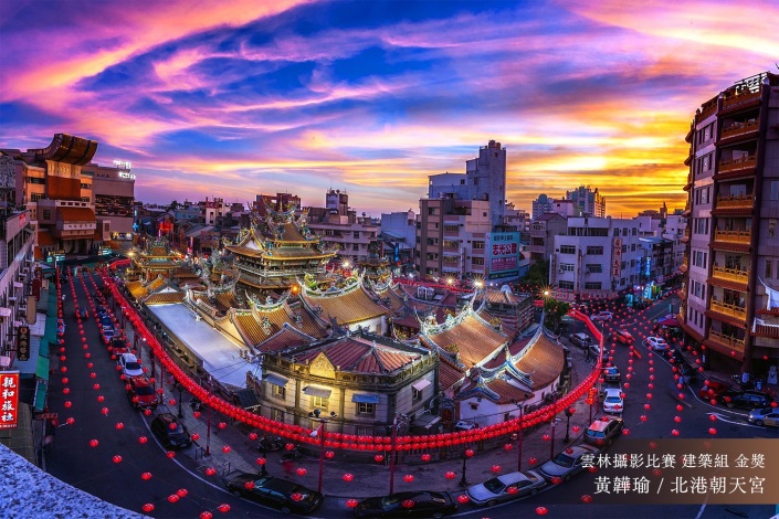 建築組金獎第一名,由參賽者黃韡瑜以作品「北港朝天宮」抱走首獎,透過鏡頭彰顯宗教建築美好內涵。圖/雲林縣府提供