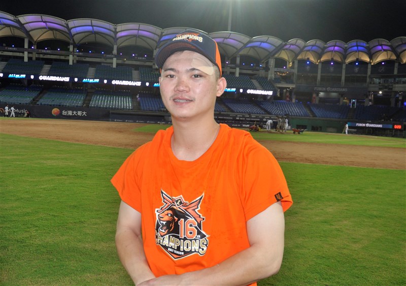 林靖凱因左眉傷口,封王後成為獅隊全隊最乾的男人。圖/記者張哲郢