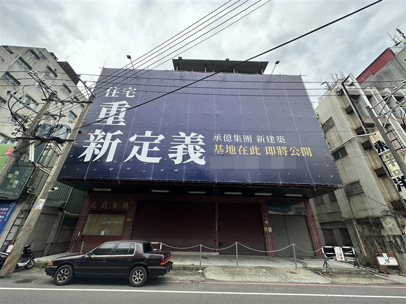 嘉義最後一間二輪片戲院新榮戲院,2019年9月30日關門熄燈,承億集團買下戲院基地,計畫興建電梯住宅大樓,日前在戲院大樓高掛看板。圖/魯永明