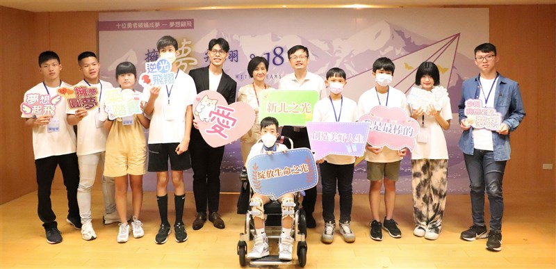 新北市教育局今在新北市府舉辦《擁夢飛翔18》新書發表會,期盼透過分享與發表10位勇者的生命故事,發揮社會正面影響力。圖/教育局提供