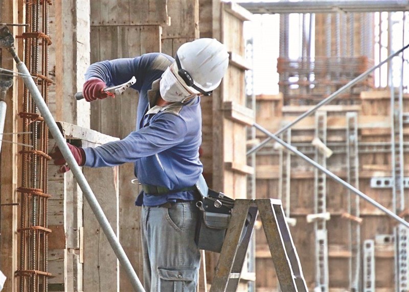 因應營造業缺工,內政部自8月1日起,「有條件」定額開放申請移工,首波名額8000人,預計1900家業者受惠。圖為營造工地工人施工。圖/中央社