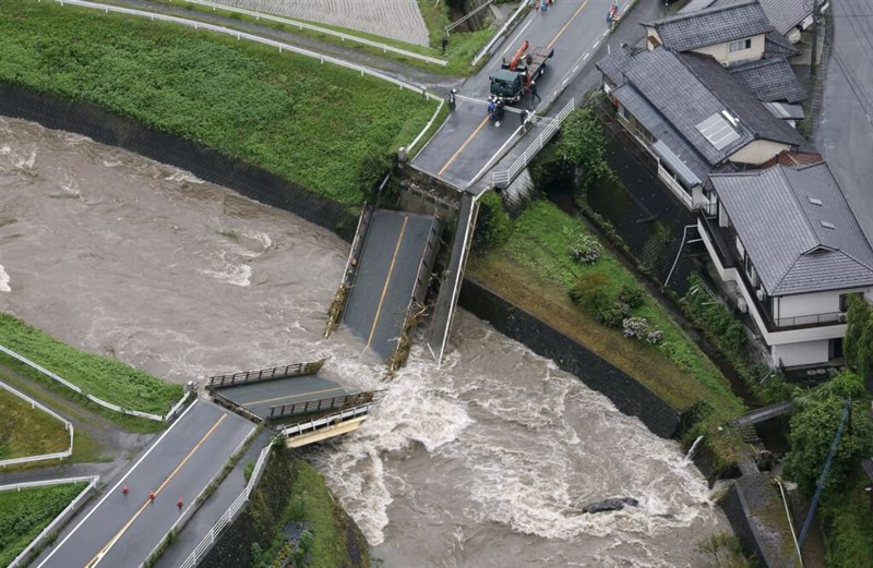 日本九州各地持續下大雨,熊本縣對大約45萬名居民發出疏散指示。圖/共同社