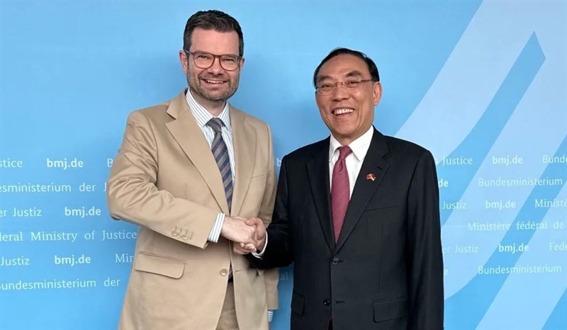 德國聯邦司法部表示,部長布希曼(MarcoBuschmann)昨(4日)在柏林會晤台灣法務部長蔡清祥,雙方會談聚焦刑事司法互助,其次是網路詐騙和引渡事宜。
