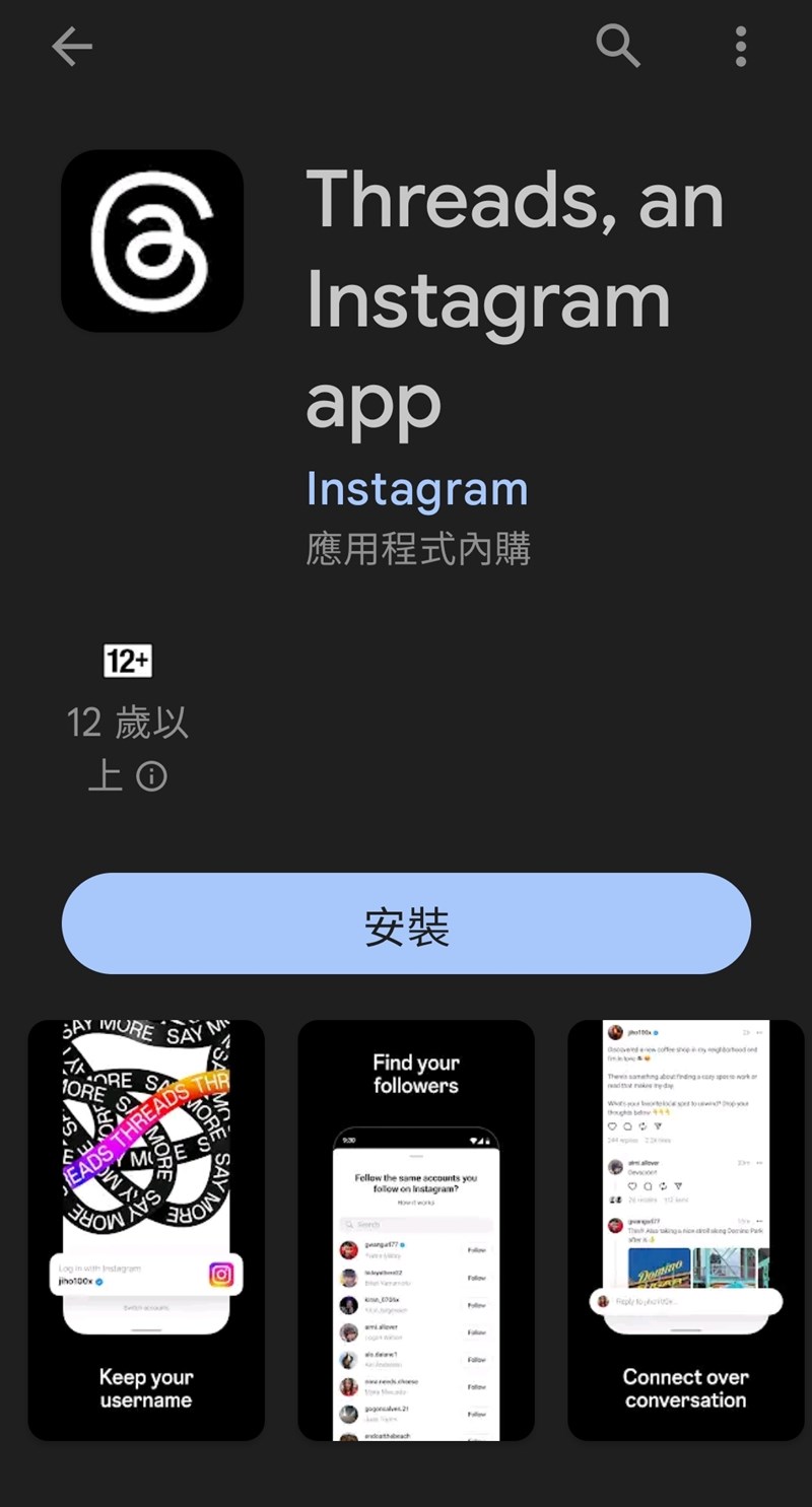 Threads在應用程式平台已上架。圖/記者張睿杰翻攝