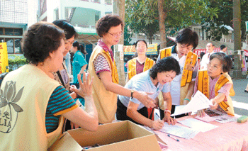為四川震災吃素祈福 圖、文/人間社記者丘欣榮、呂秀梨 |2008.05.26 語音朗讀 433觀看次 字級 大 中 小 國中學生基本學力測驗二十四、二十五日舉行第一次測驗,佛光會嘉義教師分會、金剛分會聯合在嘉義高中考場設立考生服務隊,為考生提供各項服務,同時推出「就素要慈悲—為四川地震死傷災民祈福吃素」活動,獲得不少家長、學生的回響,紛紛連署。不少考生對「佛光會考生服務」感到很好奇,還特別一探究竟,佛光人親切招呼,並以智慧筆、杯水等與考生結緣,祝福考場順利,金榜題名,許多家長、學生連署,發願吃素,將功德回向給法界眾生及四川地震死傷的災民;校長何經則感謝佛光人的服務。 前一篇文章 成人之美 160位青年告別青澀歲月 下一篇文章 心靈輔導/助建家園 佛光山將展開二階段賑災 熱門新聞 01渥太華佛光山 授海狸童軍領巾2025.11.1702警告日本 陸黃海軍演、籲暫勿遊日 2025.11.1603【詩】遊園地.競馬場2025.11.1704墨西哥熱氣球節 高空爭豔2025.11.1605芬普尼毒蛋 又爆4萬顆流入市面2025.11.1606落葉刺繡 巴西百鳥寫真集2025.11.1707克林姆富家女肖像畫 估值46億元2025.11.1708【快樂塗鴉簿】熱鬧的內灣小鎮2025.11.1709AMR機器人 是什麼?2025.11.1710中日緊張 陸4海警船巡航釣魚台2025.11.17 訂閱電子報 台北市 天氣預報 台灣一週天氣預報 相關報導 緬懷星雲大師 全球佛教學者暢談人間佛教245校雲端交流 凝聚三好共識推廣生命教育 林聰明獲特殊貢獻獎西方寺瑜伽課 接引民眾結法緣元宵乞龜 390兩大金龜亮相基督城地震10年 佛光山領眾祈願