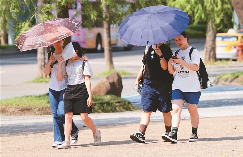 各地連日天氣炎熱,許多行人不禁撐傘遮陽。圖/潘俊宏